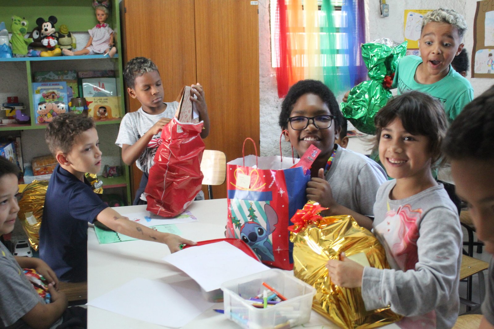 Escola. As turmas do segundo ano da Escola receberam presentes de Natal do Grupo Life Brasil. A empresa Hennings contribuiu com bolas de vôlei e futebol para as turmas do quinto ano da Escola. No Serviço de Convivência e Fortalecimento de Vínculos, as empresas VML Comp e Aegro atenderam às cartinhas das crianças e doaram brinquedos Cada gesto fortalece o trabalho da instituição e reafirma a importância do cuidado coletivo na construção de um futuro mais digno para quem atendemos.