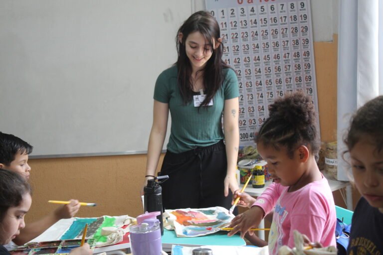 Nas turmas do primeiro ano da Escola, duas voluntárias estudantes de Licenciatura em Artes Visuais da UFRGS estão conduzindo oficinas