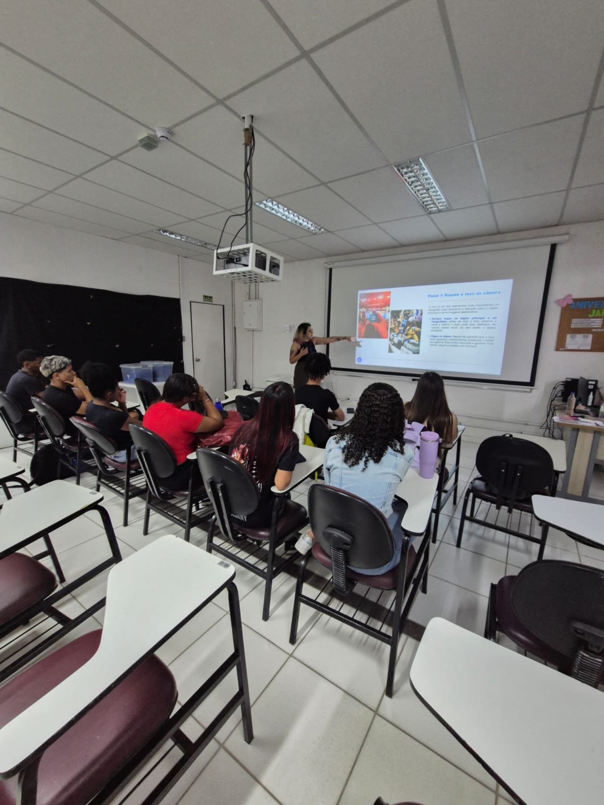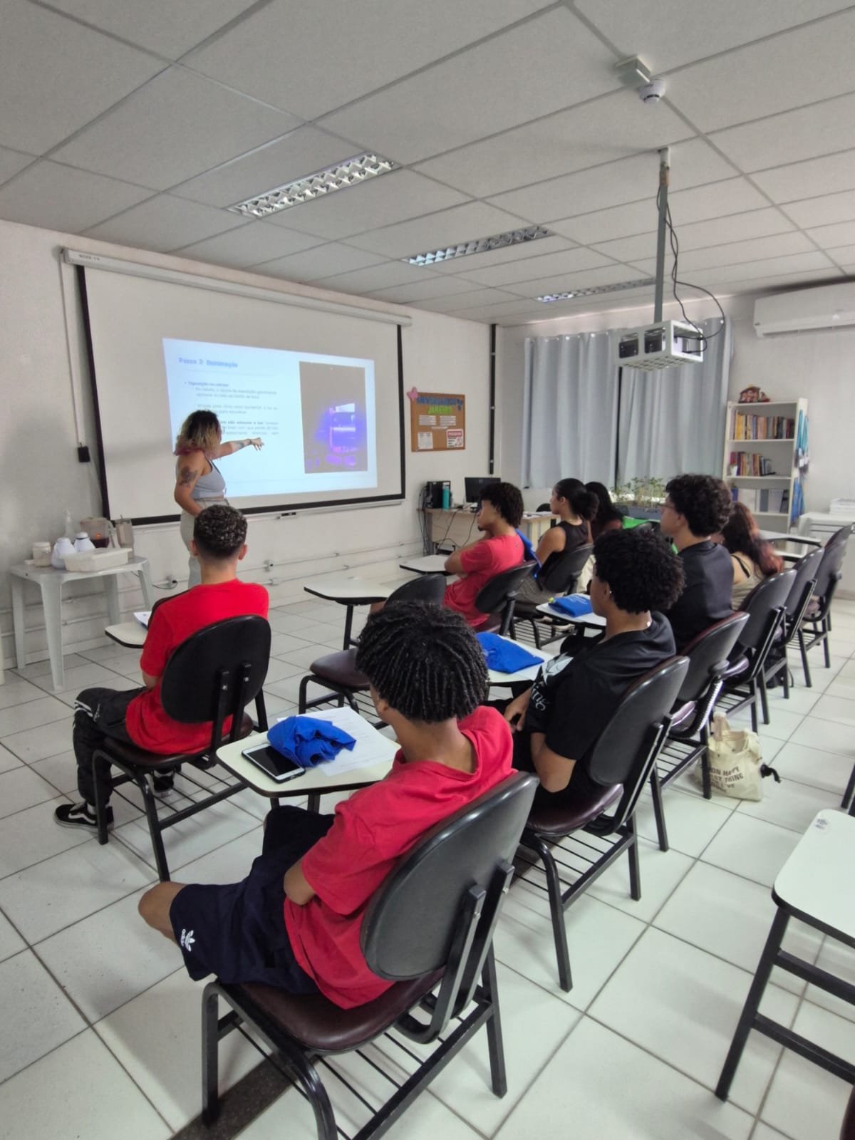 Durante a palestra, os participantes aprenderam técnicas de fotografia e vídeo utilizando o celular, além de receberem orientações para a criação de conteúdos atrativos e alinhados às dinâmicas das redes sociais. A atividade reforça o uso da comunicação como instrumento de expressão, aprendizado e protagonismo juvenil.