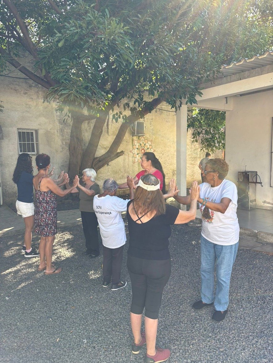 Após um período de pausa, dezembro marcou o retorno da oficina de ginástica com a voluntária Andressa, para a alegria do Grupo de Idosos. Os encontros são voltados a exercícios de alongamento e de fortalecimento do corpo, pensados para apoiar as atividades do dia a dia, estimular a autonomia e promover o bem-estar. A oficina também reforça a importância de envelhecer com qualidade, cuidando do corpo e valorizando o convívio e a troca.