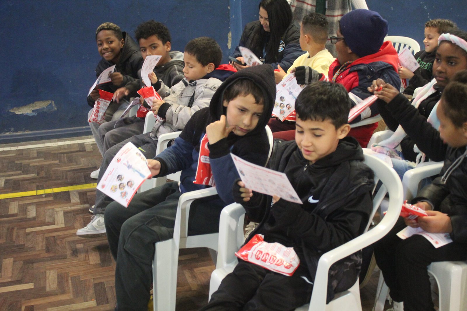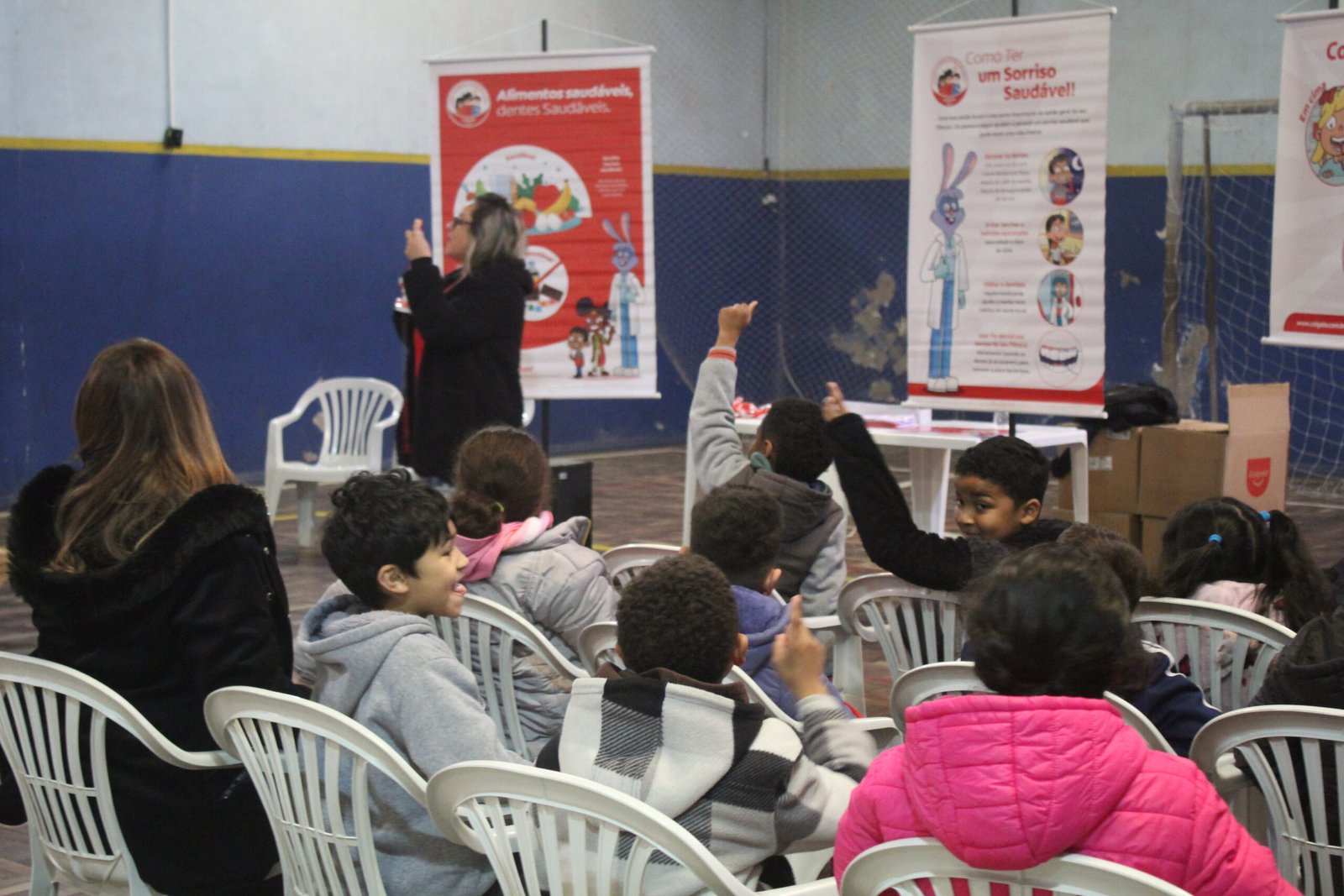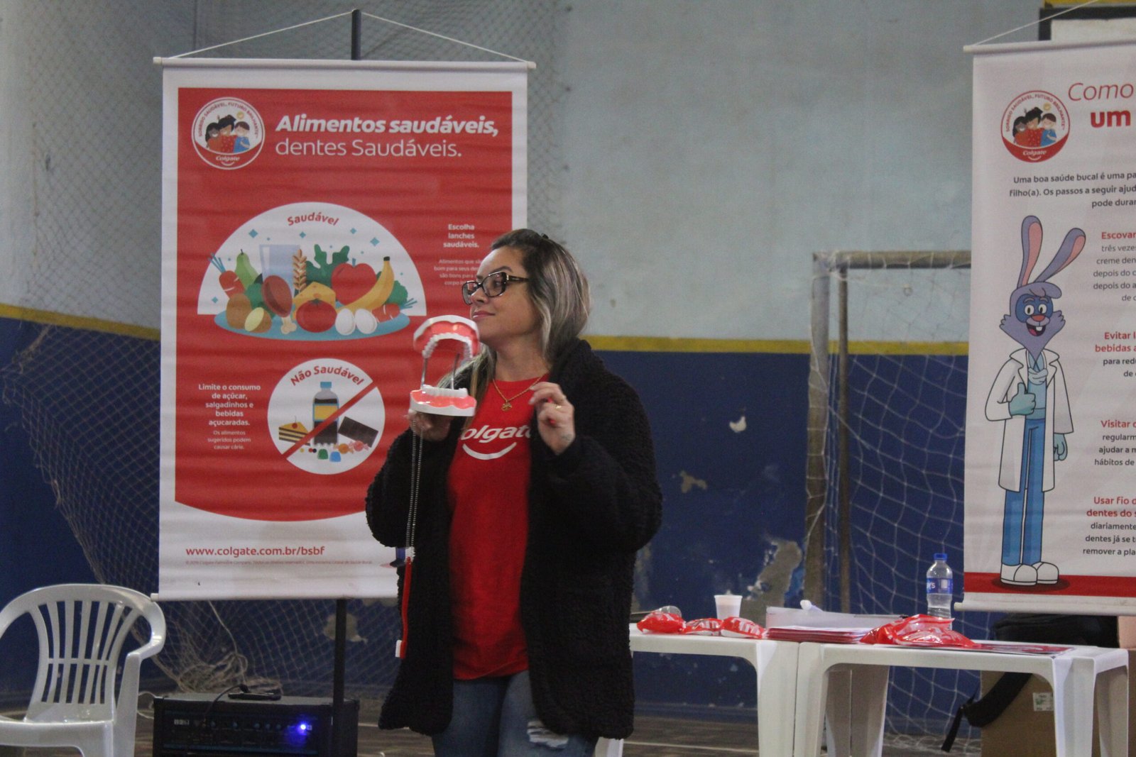 Durante a palestra, elas aprenderam mais sobre a importância da higiene bucal, tiraram dúvidas e receberam orientações práticas sobre como e quantas vezes escovar os dentes por dia. Cada criança também ganhou um kit de higiene Colgate, com escova e creme dental.