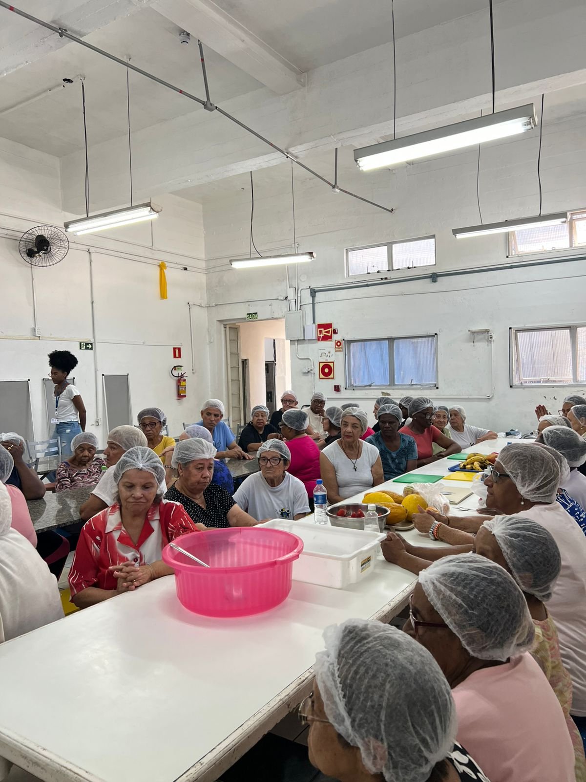 Como parte das atividades, o Grupo Esperança de Idosos participou de uma oficina de culinária voltada à promoção da convivência e de hábitos alimentares saudáveis. Durante o encontro, os participantes prepararam coletivamente uma salada de frutas, em um ambiente leve, acolhedor e marcado pela cooperação.